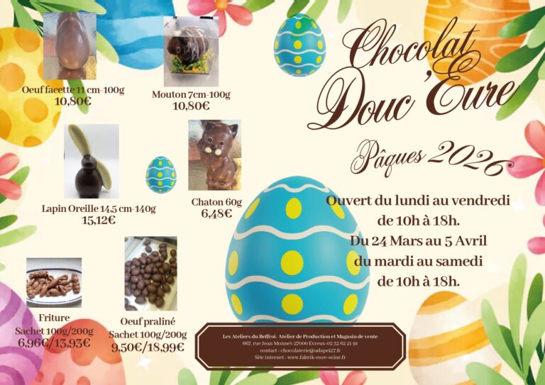 Offrez un voyage au cœur du cacao pour la Saint-Valentin Poussez les portes de Douc’Eure et laissez-vous transporter par l’odeur du cacao. Nos chocolats sont